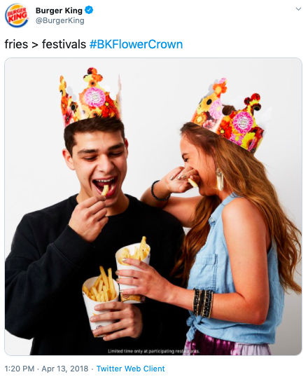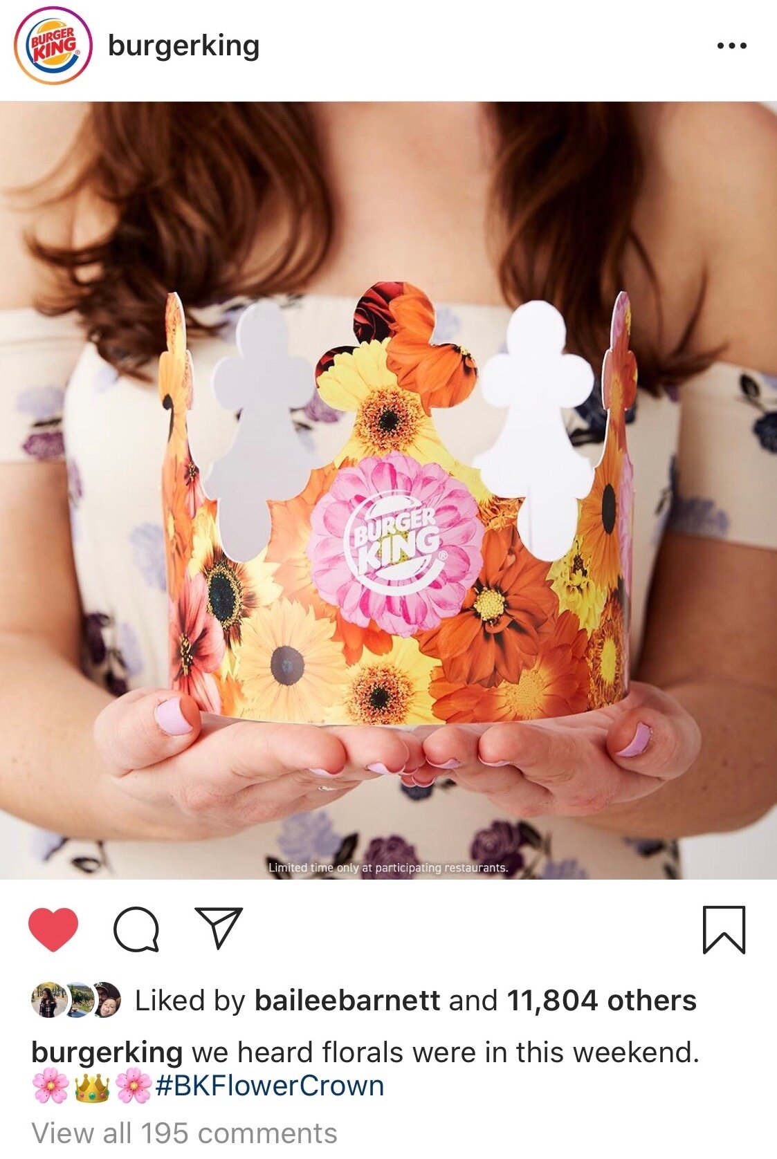 We created our own version of the festival’s iconic flower crowns by redesigning the paper Burger King crowns at restaurants in California, and encouraged non-festival goers to celebrate Couchella with us on social media by modeling their limited edition crowns.