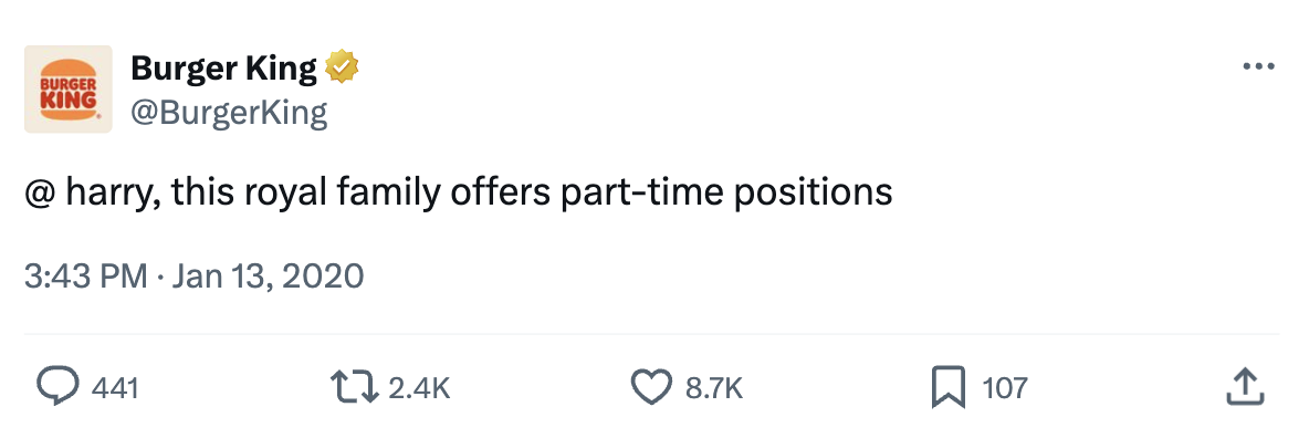 Burger King offered the Prince a part time gig if he no longer wished to be a full-time royal.
